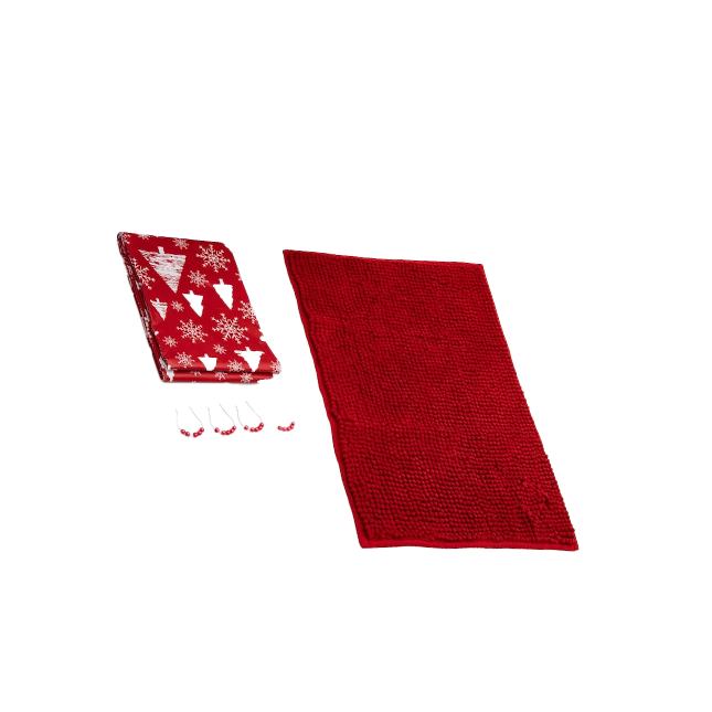 Cortina y Tapete para Baño Starhaus Rojo 2 Piezas